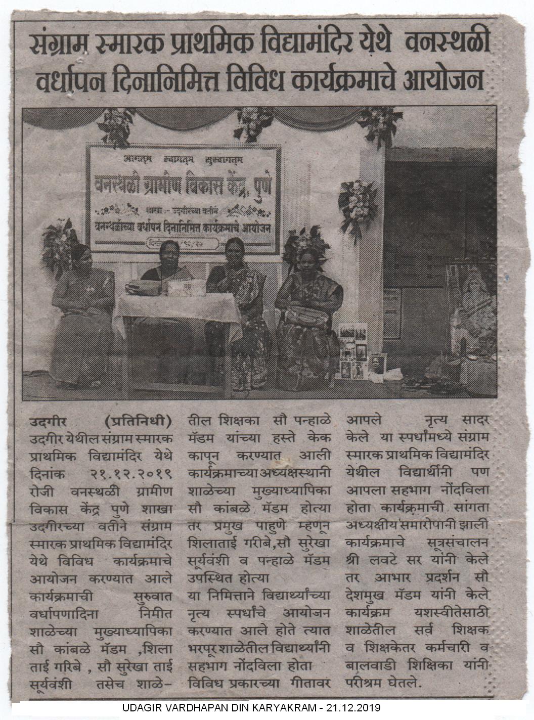 In diesem Zeitungsartikel vom Dezember 2019 wird die Arbeit von Vanasthali beschrieben.